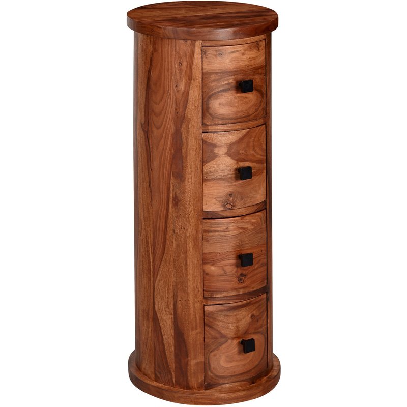 FineBuy Design Sideboard Sheesham Massivholz Ø 35 cm, Schränkchen mit Schubladen, Schmaler Beistellschrank Massiv, Mini Kommode Rund