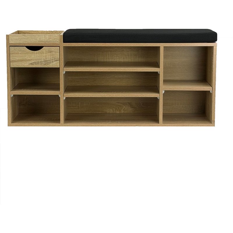 Besonderheiten • Durch einen Muldengriff lässt sich die Schublade einfach herausziehen • Komfortable Sitzfläche durch üppig gepolsterte Auflage • Belastbarkeit der Garderobenbank liegt bei ca. 80 kg