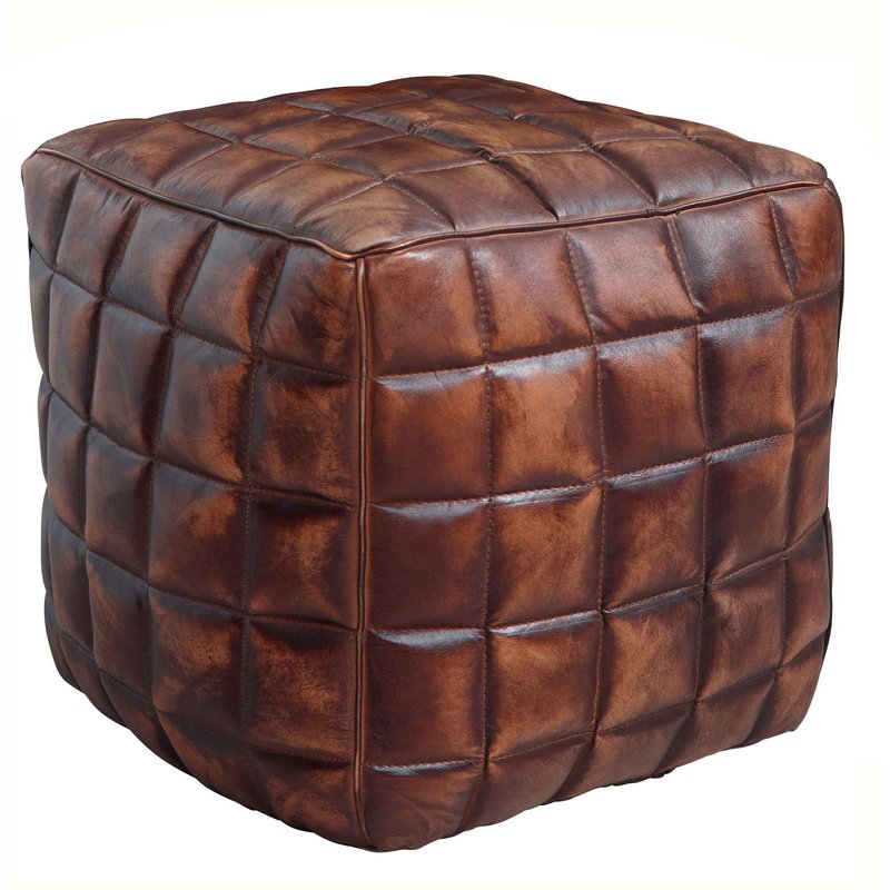 FineBuy Sitzwürfel Echtleder braun 39 x 41 x 39 cm Ottomane Wohnzimmer, Design Pouf Hocker orientalisch, Polster Sitzhocker edel, Orient Beinablage Sofa, Würfel Polsterhocker eckig