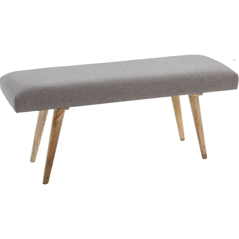Design • Kultige Sitzbank im modern interpretierten Retro-Style • Stimmiger Materialmix aus Massivholz und Baumwolle • Üppige Polsterung für ein angenehmes Sitzgefühl