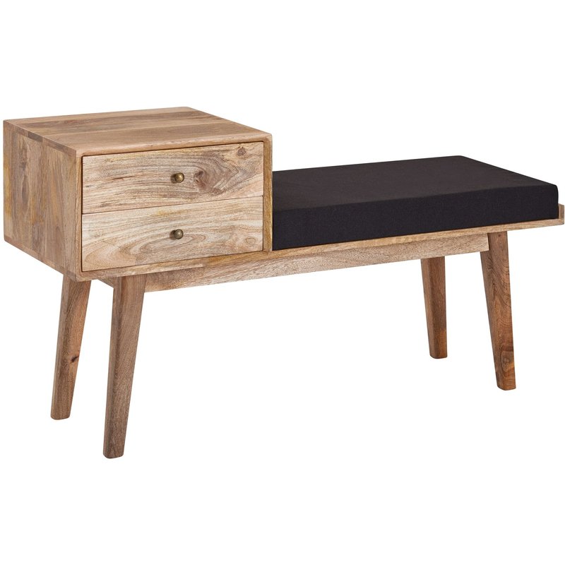 Material • Sitzflächenbezug: Stoff • Korpus: Mango Massivholz, mit Klarlack beschichtet • Schubladengriffe: Eisen