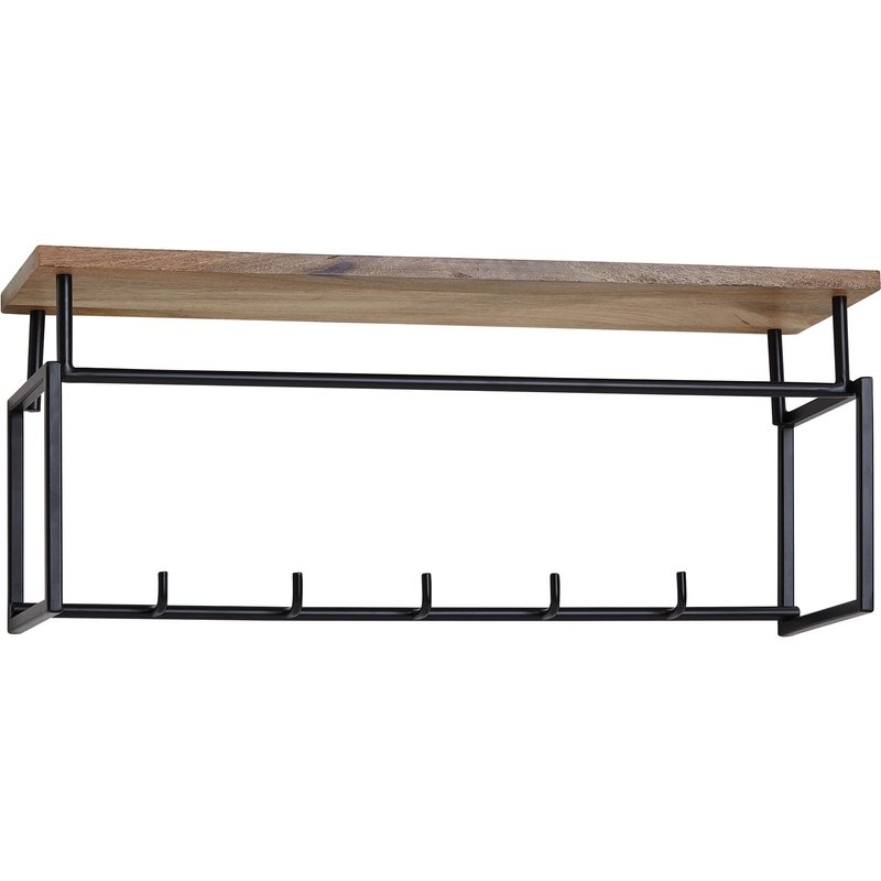 FineBuy Wandgarderobe Mango Massivholz 70 cm mit Ablage - Industrial Garderobenpaneel mit Hutablage - Wand Garderobenleiste Hakenleiste - 5 Metall Kleiderhaken & Kleiderstange