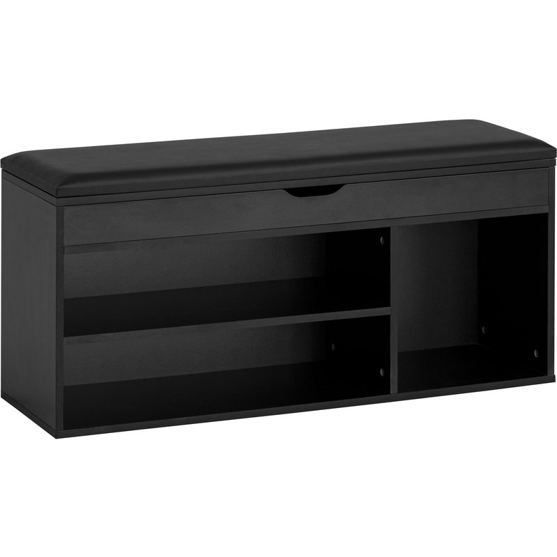 FineBuy Schuhbank mit Sitzfläche Garderoben-Bank 104x51x32 cm Kunstleder Schwarz, Holzbank Klein Gepolstert, Sitzbank Schmal Flur mit Stauraum, Truhenbank Schuhtruhe Flurmöbel