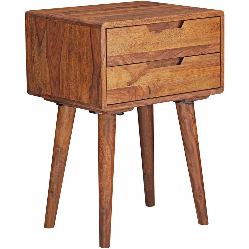 FineBuy Nachttisch Sheesham Massivholz mit 2 Schubladen - Nachtkästchen für Boxspringbett - Nachtkonsole Retro Design - Nachtkommode 47x66x36 cm