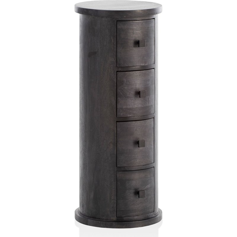 FineBuy Design Sideboard Mango Massivholz Schwarz, Schränkchen mit Schubladen, Schmaler Beistellschrank Massiv, Mini Kommode Rund