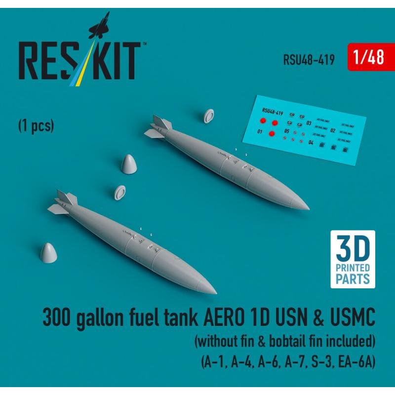 300 gallon fuel tank AERO 1D USN & USMC (without fin & bobtail fin included) (2 pcs) (A-1, A-4, A-6, A-7, S-3, EA-6A) (3D Printed)