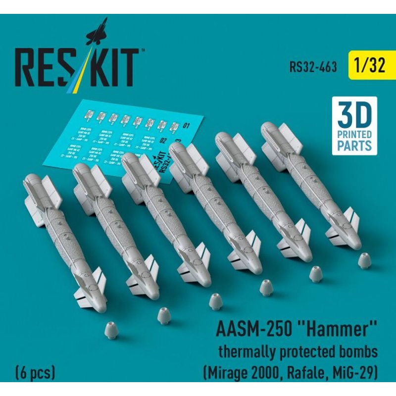 AASM-250 Hammer thermally protected bombs (6 pcs) (Mirage 2000, Rafale, MiG-29) (3D Printed)