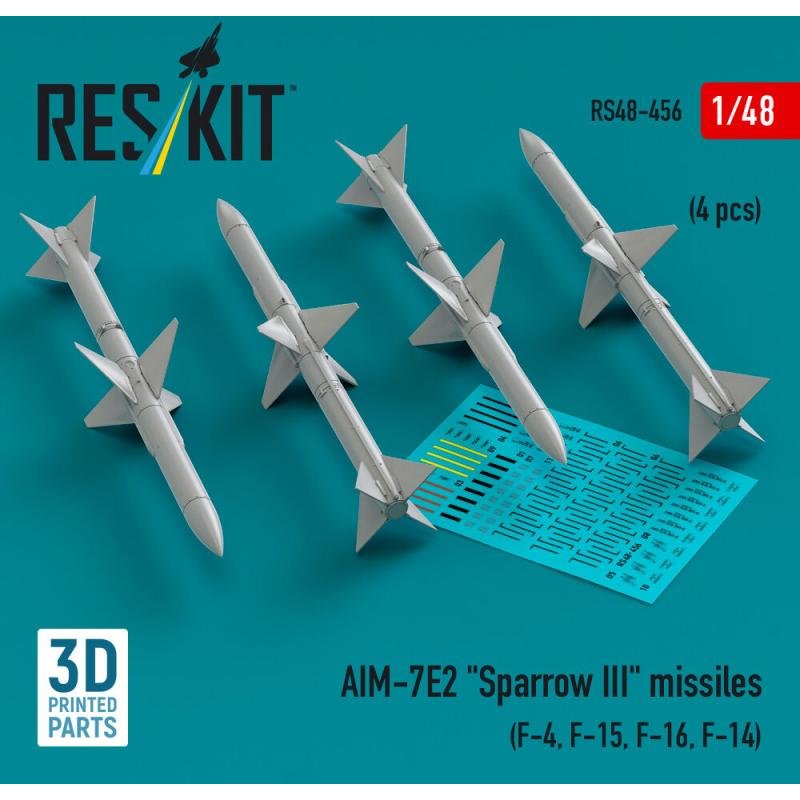 AIM-7E2 Sparrow III missiles (4 pcs) (F-4, F-15, F-16, F-14) (3D Printed)