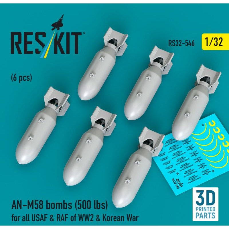 AN-M58 bombs (500 lbs) for all USAF & RAF of WW2 & Korean War (6 pcs) (3D Printed)