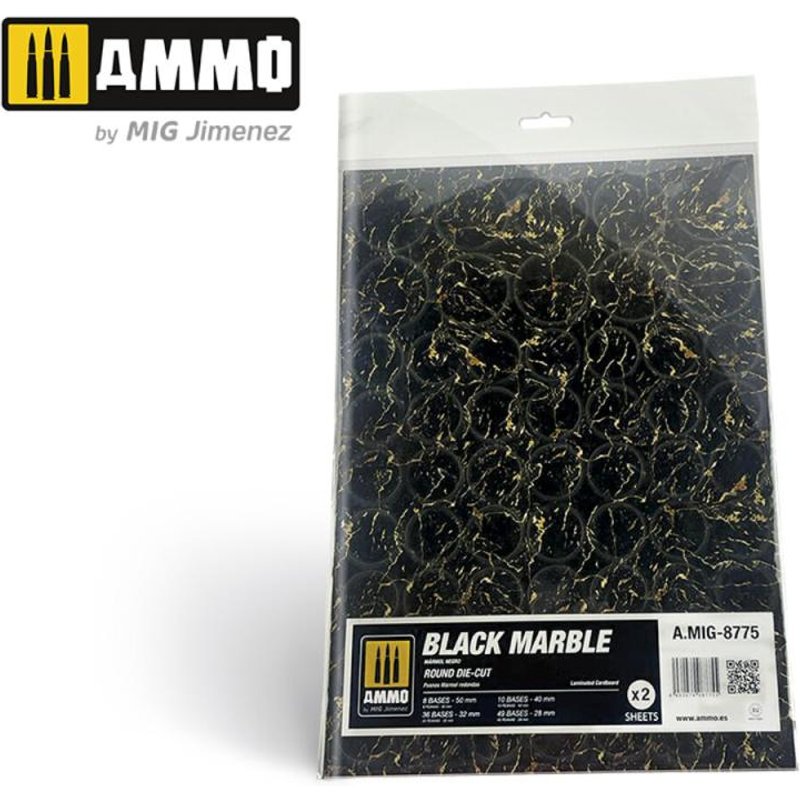Black Marble. Round Die-cut for Bases for Wargames - 2 pcs