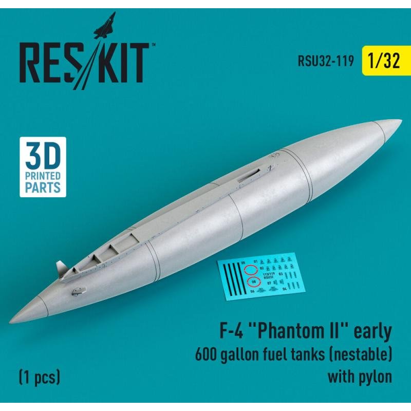 F-4 Phantom II early 600 gallon fuel tanks (nestable) with pylon (1 pcs) (3D Printed)