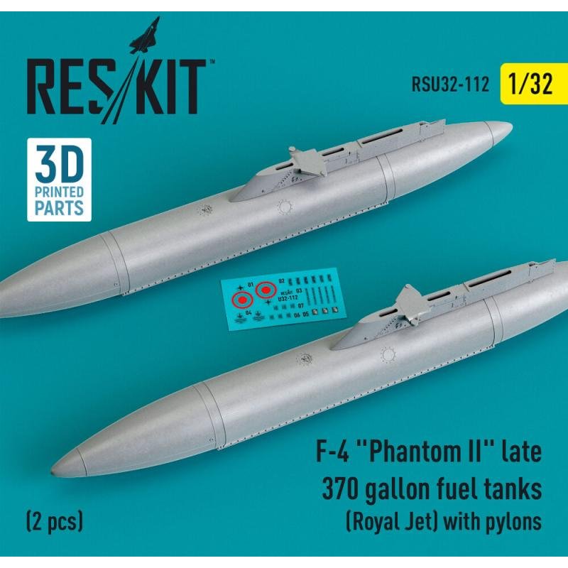 F-4 Phantom II late 370 gallon fuel tanks (Royal Jet) with pylons (2 pcs) (3D Printed)
