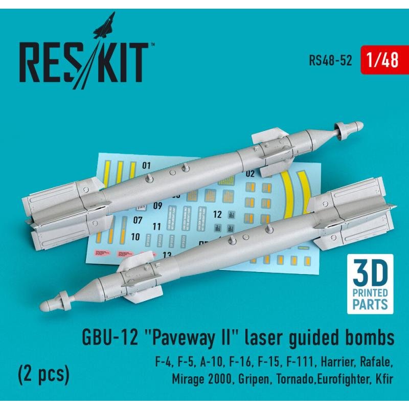 GBU-12 Paveway II laser guided bombs (2 pcs) (F-4, F-5, A-10, F-16, F-15, F-111, Harrier, Rafale, Mirage 2000, Gripen, Tornado,Eurofighter, Kfir) (3D Printed)