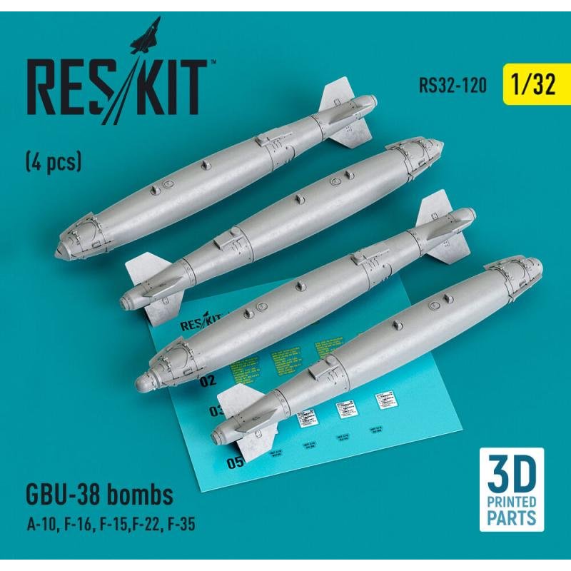 GBU-38 bombs (4 pcs) (A-10, F-16, F-15,F-22, F-35) (3D Printed)