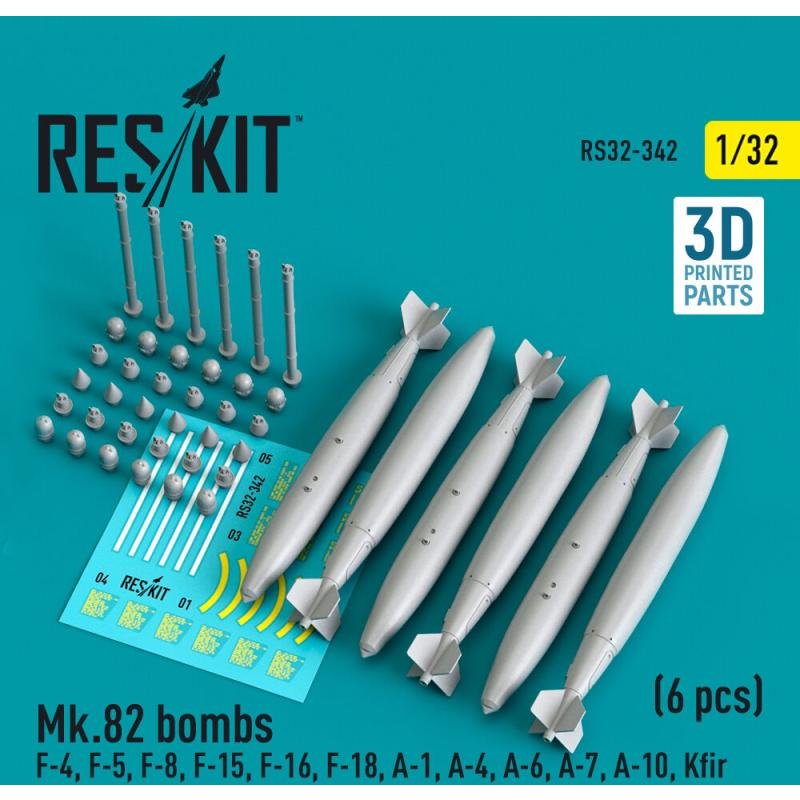 Mk.82 bombs (6 pcs) (F-4, F-5, F-8, F-15, F-16, F-18, A-1, A-4, A-6, A-7, A-10, Kfir) (3D Printed)