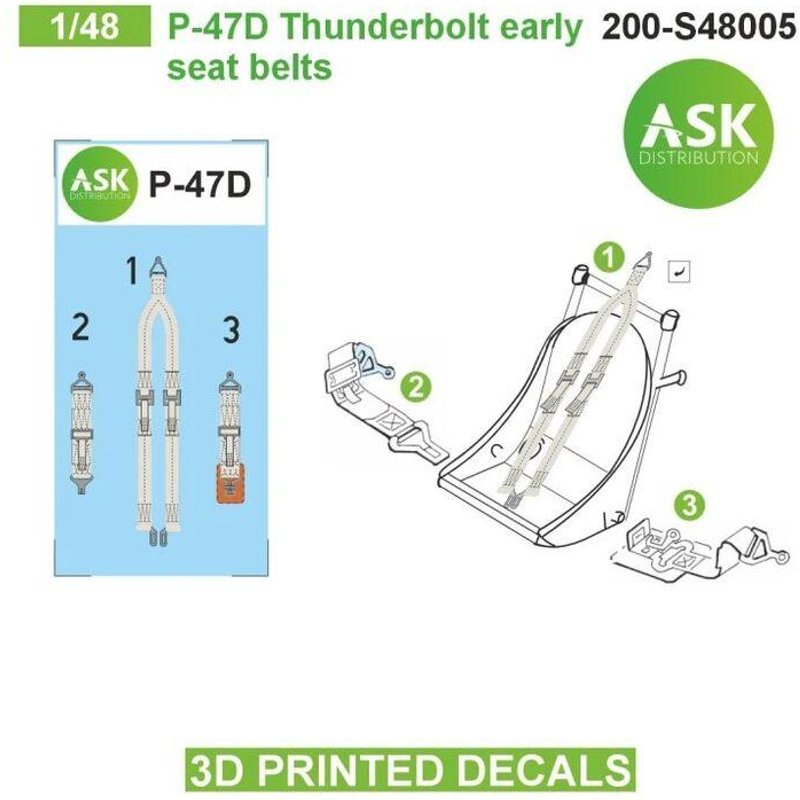P-47D Thunderbolt early seat belts - 3D printed decals