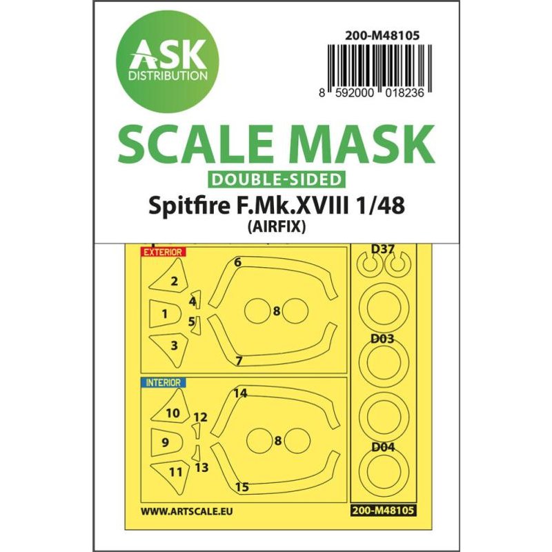 Spitfire F.Mk.XVIII - Double-sided mask self-adhesive, pre-cutted [Airfix]