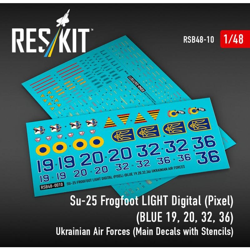 Su-25 Frogfoot LIGHT Digital (Pixel) (BLUE 19, 20, 32, 36) Ukrainian Air Forces (Main Decals with Stencils)