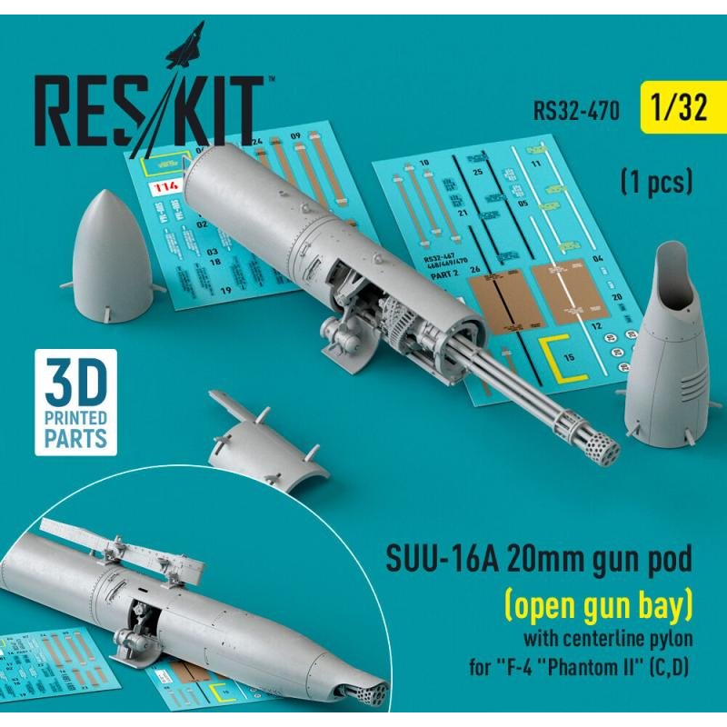SUU-16A 20mm gun pod (open gun bay) with centerline pylon for F-4 Phantom II (C,D) (1 pcs) (3D Printed)