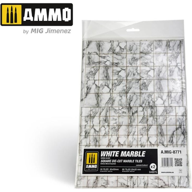 White Marble. Square Die-cut Marble Tiles - 2 pcs