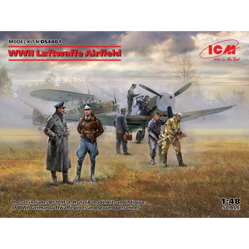 WWII Luftwaffe Airfield (MesserschmittBf109F-4,Hs126B-1,Pilot,Ground Pers(7 fig