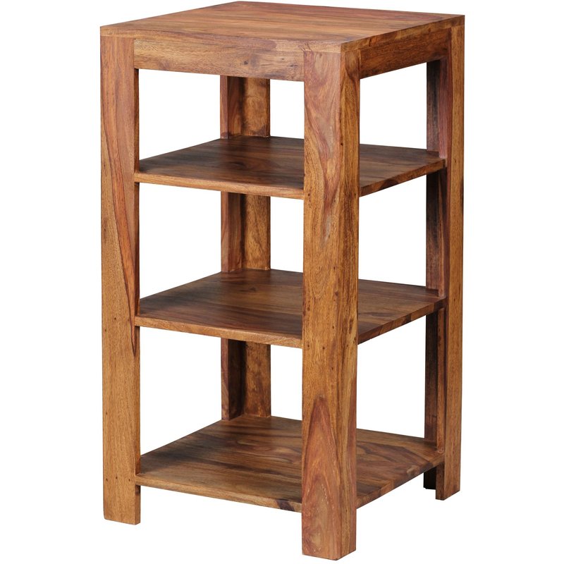FineBuy Standregal Massiv-Holz Sheesham 80 cm Wohnzimmer-Regal mit 3 Ablagefächer Design Landhaus-Stil Beistelltisch