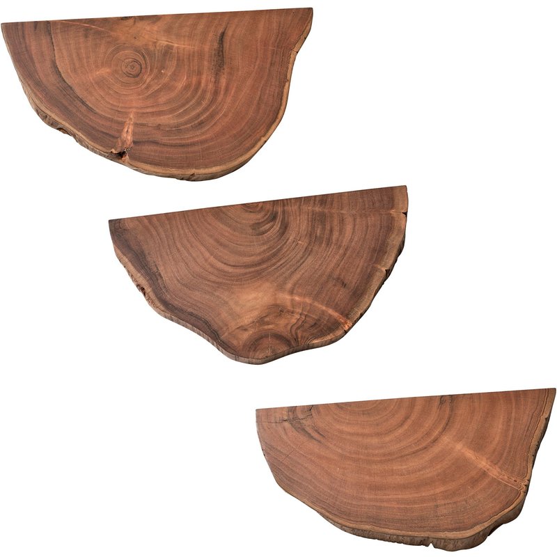 Design • Ausdrucksstarke Wandregale mit natürlichem Erscheinungsbild • Jedes Stück mit naturbelassener Baumkante • Drei Ablageflächen für Dekoration, Pflanzen und vieles mehr