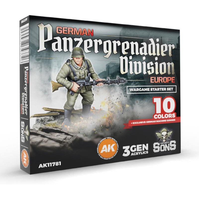 GERMAN PANZERGRENADIER DIVISION EUROPE - Wargame Starter Set (10 Colors + Exclusive Figure German Machine Gunner)