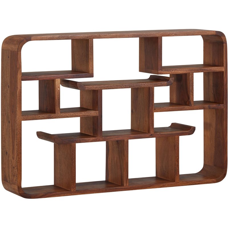 Besonderheiten • Jedes Wandregal wurde liebevoll von Hand gefertigt und ist somit ein unverwechselbares Unikat • Da es sich um Handarbeit und um ein Naturprodukt handelt, kann es zu Farbabweichungen oder Unebenheiten kommen • Vorrichtung zur Wandmontage an der Rückseite des Regals • Insgesamt zehn Ablagefächer bieten Platz für diverse Gegenstände • Aufgrund des Designs ist das Regal für verschiedene Räume geeignet • An der Rückseite befinden sich Bohrungen, die zur Montage an der Wand dienen • Keine sichtbaren Halterungen - Holzregal scheint an der Wand zu schweben • Empfohlene Maximalbelastbarkeit: 30 kg
