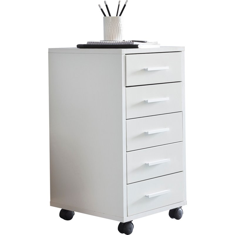 FineBuy Rollcontainer Weiß 33 x 63 x 38 cm Holz Schubladenschrank Schreibtisch, Büro Schrank mit 5 Schubladen, Container Rollschrank klein Standcontainer schmal, Schreibtischcontainer mit Rollen