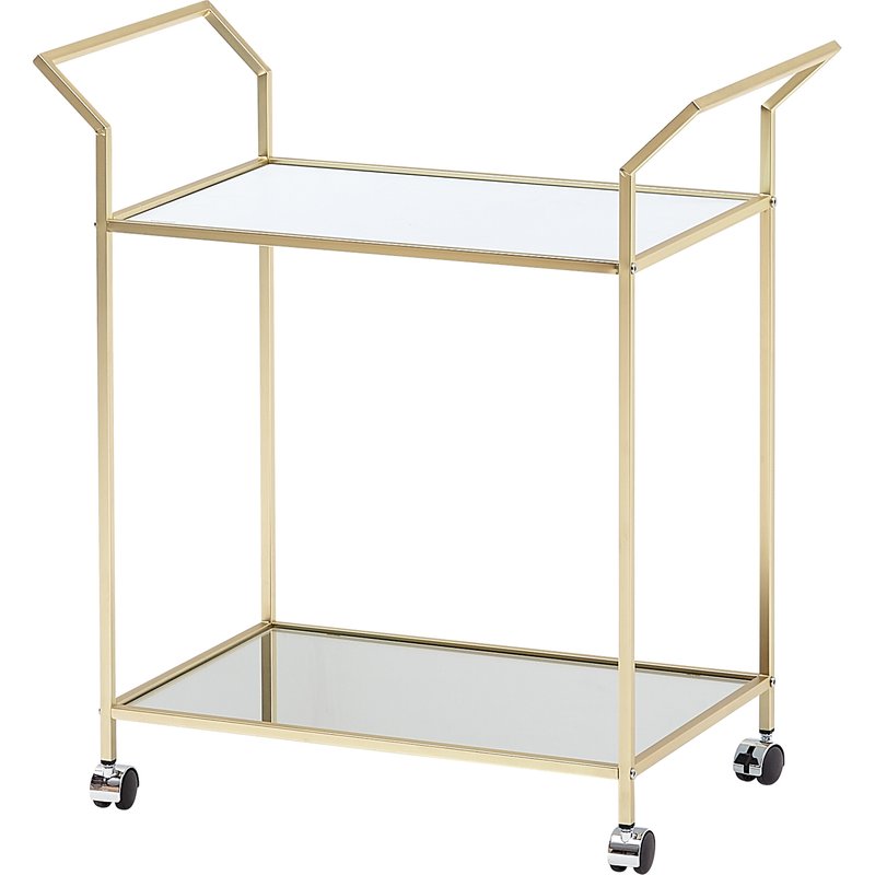 Design • Moderner Beistelltisch im angesagten Goldton • Servierwagen mit einem Hauch von Retro-Charme • Eckige Minibar mit zwei verspiegelten Ablageflächen