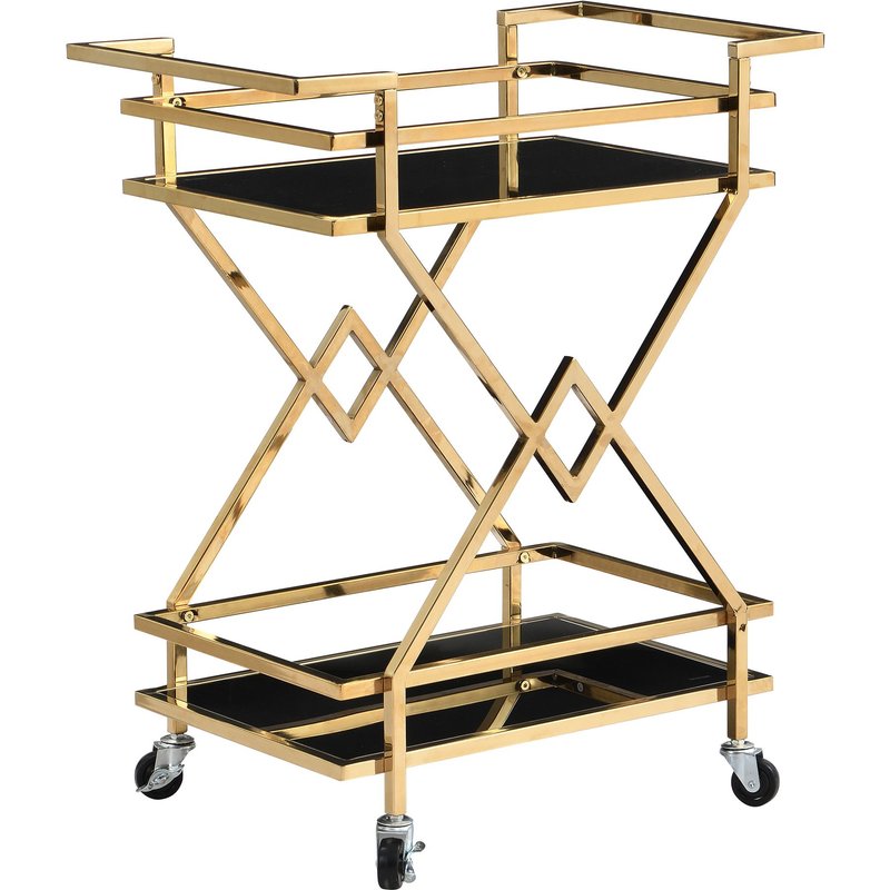 Design • Moderner Servierwagen im eleganten Schwarz-Gold-Look • Rechteckige Form mit klaren Linien für zeitlose Optik • Zwei Ablagen aus Glas für stilvolle Präsentation von Getränken & Accessoires • Edles Gestell aus Metall für einen glamourösen Akzent im Raum