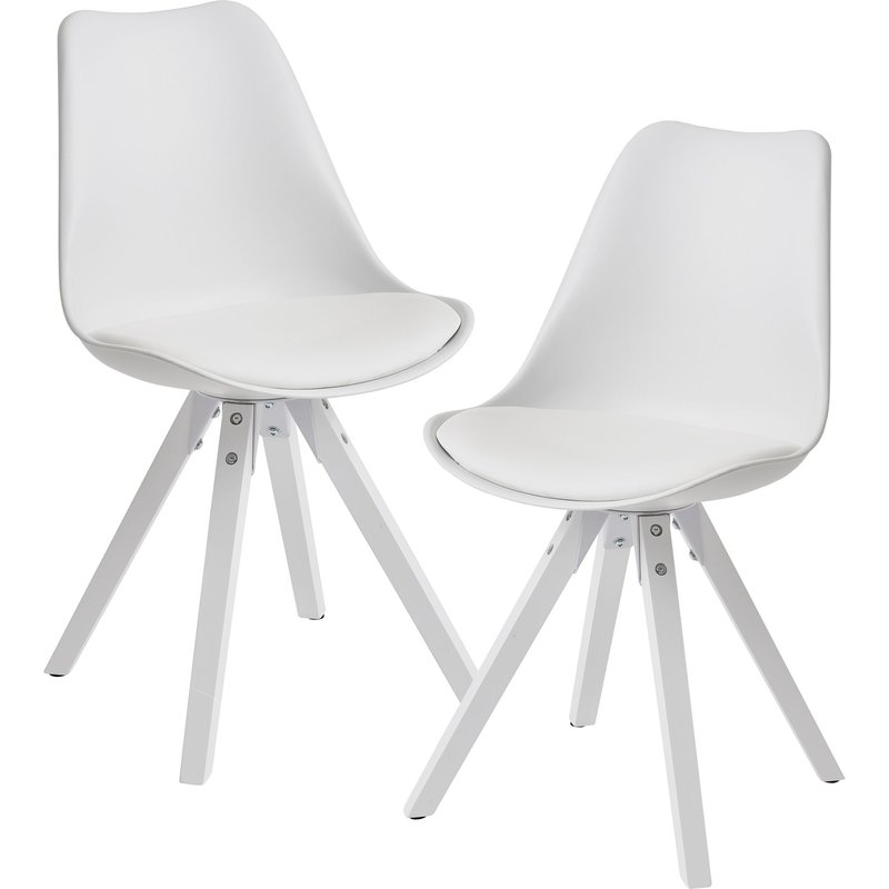 Finebuy 2er Set Retro Esszimmerstuhl mit weißen Beinen, Polsterstuhl Skandinavisch Rückenlehne, Küchenstuhl Kunstleder gepolstert