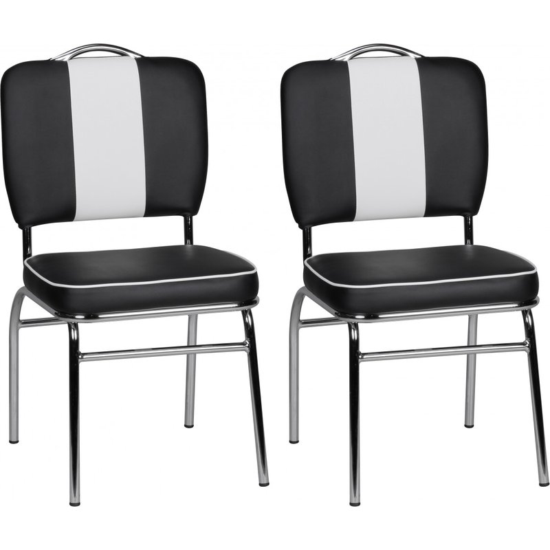 FineBuy 2er Set Esszimmerstuhl American Diner 50er Jahre Retro, Sitzfläche gepolstert mit Rücken-Lehne, Essstuhl