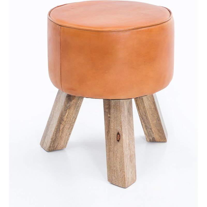 Design • Runder Sitzhocker im angesagten Country Style • Moderner Lederhocker - Sitzfläche aus echtem Leder • Drei massive Holzbeine für robusten Stand