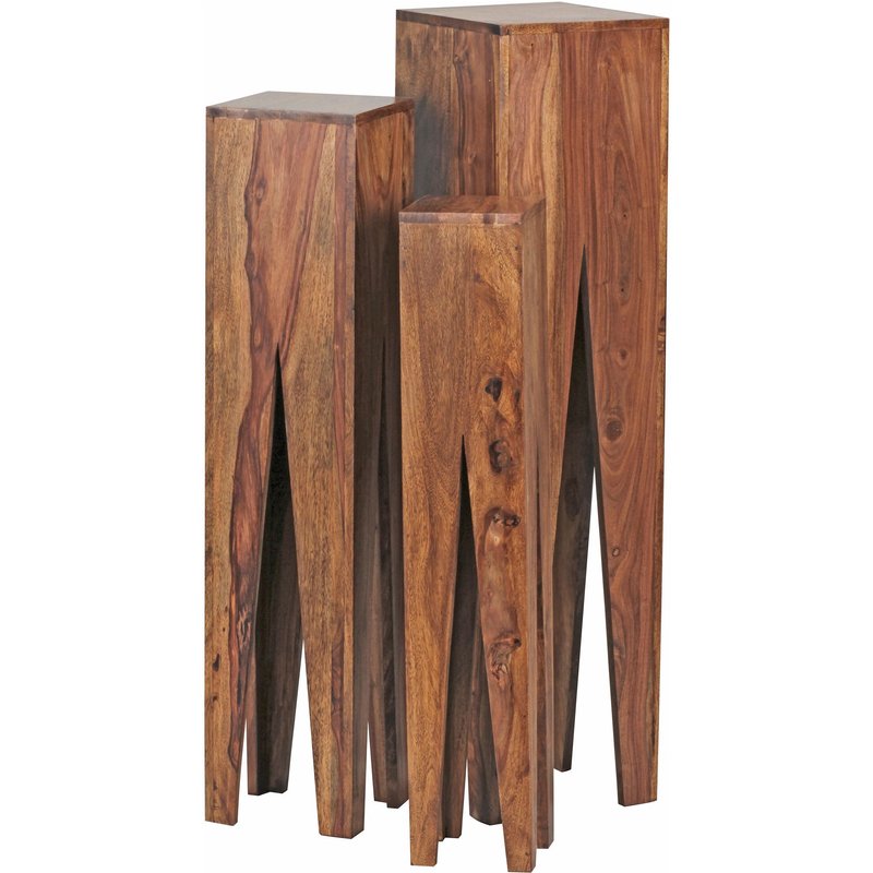 • Attraktive Beistelltische mit einzigartiger Maserung • 3er Set auch alleinstehend platzierbar • Ablagefläche in quadratischer Form • Giraffenartige Standbeine