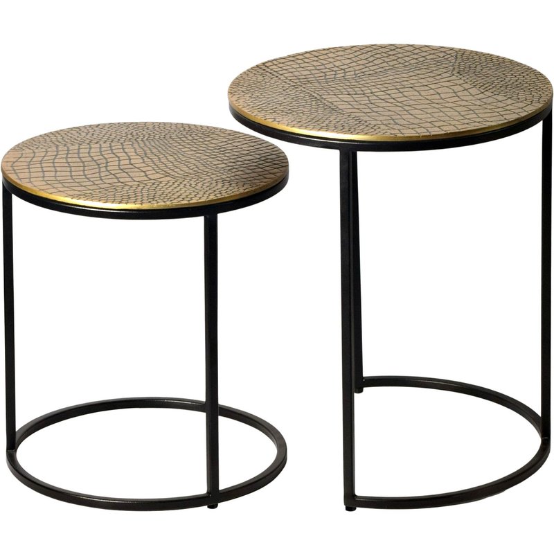 FineBuy Satztisch Metall 2er Set rund - Beistelltisch Aluminium Tischplatten mit Muster - Design Couchtisch Anstelltisch modern Eisen Gestell - Dekotisch Wohnzimmertisch Handmade