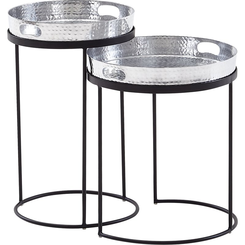 Design • Dekorative Beistelltische in modernem Design • Tischplatten mit ausdrucksstarken Hammerschlag-Strukturen • Praktische Griffmulde an beiden Seiten der Tabletts