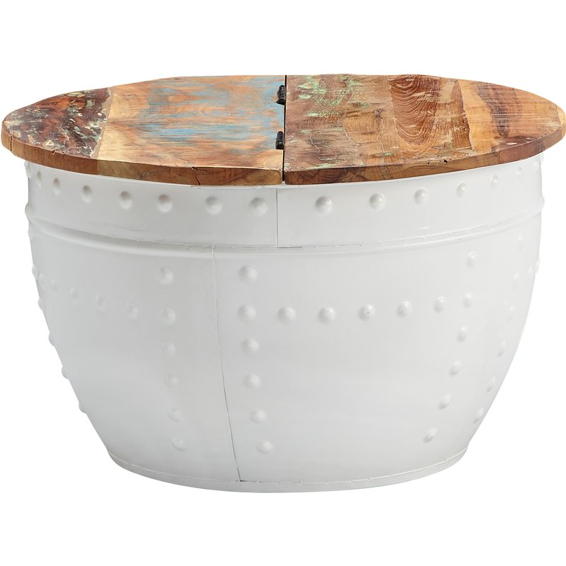 Besonderheiten • Jeder Tisch wurde in liebevoller Handarbeit gefertigt und ist somit ein absolutes Unikat • Aufgrund der Handarbeit kann es zu leichten Farbabweichungen und Unebenheiten kommen • Tischplatte lässt sich auf einer Seite hochklappen und bietet so Stauraum für z.B. Kissen oder Decken • Die Holzoberfläche ist mit einem schützenden Klarlack versiegelt • Empfohlene Maximalbelastbarkeit: 15 kg