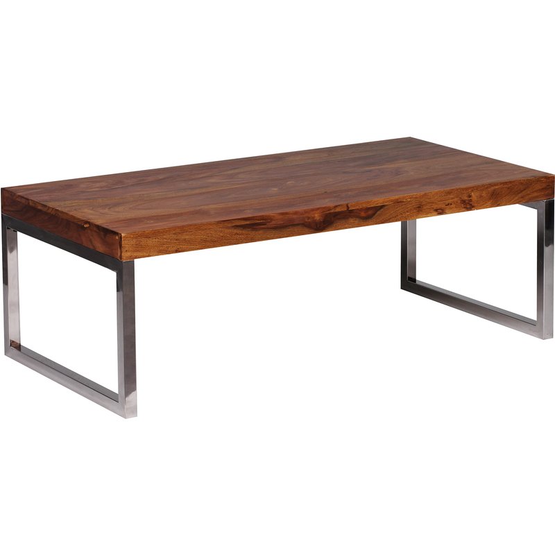 FineBuy Couchtisch Massivholz 120cm · Rechteckiger Wohnzimmertisch mit verchromtem Kufengestell · Handgefertigter Sofatisch im modernen Industrial Design