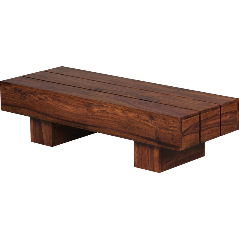 FineBuy Couchtisch rechteckig Massivholz 120 cm – Wohnzimmertisch eckig im Block Design | Moderner Holztisch handgefertigt | Design Naturmöbel