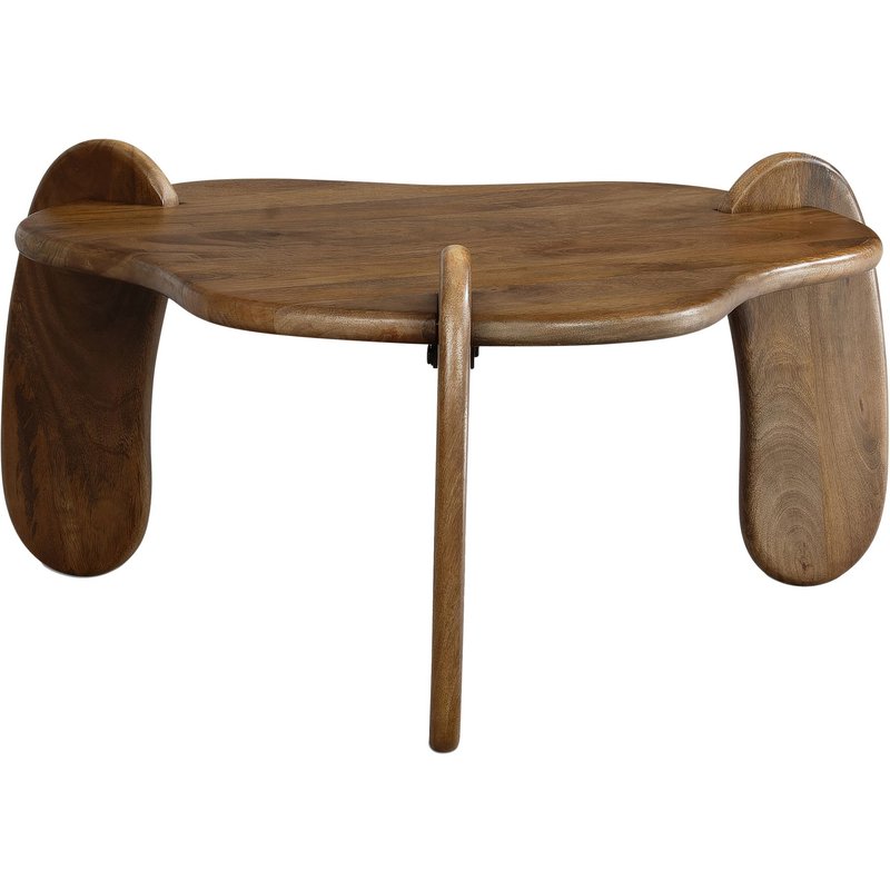 Design • Außergewöhnlicher Couchtisch in modernem Design • Tischplatte in organischer Form • Sichtbare, natürliche Holzmaserung auf dem kompletten Tisch • Drei geschwungene Beine stützen die Ablagefläche