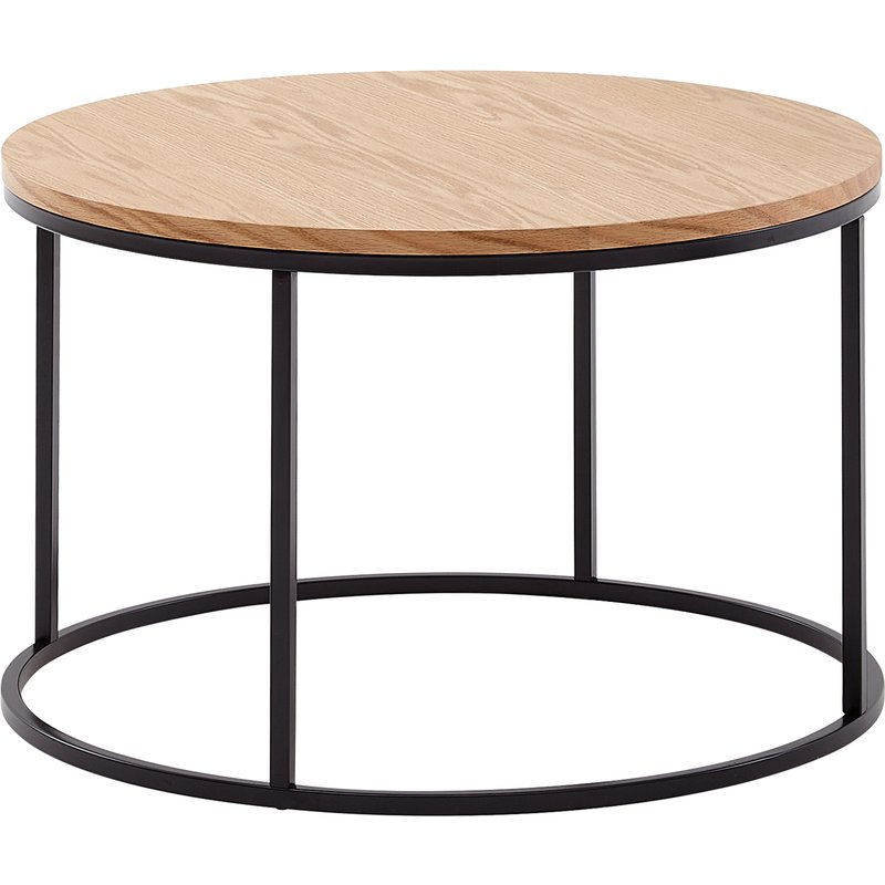 Design • Schlichter Couchtisch in modernem Design • Runde Tischplatte mit Eichenfurnier • Ausdrucksstarke Holzmaserung • Fester Stand dank des robusten Metallgestells