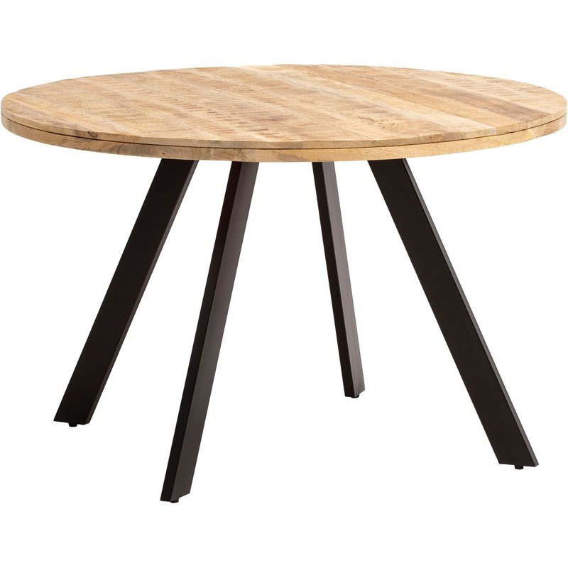 FineBuy Esstisch Rund 120cm Mango Massivholz - Massiver Esszimmertisch mit schwarzen Beinen - Echtholz Tisch für Esszimmer - Holztisch im Industrial Design