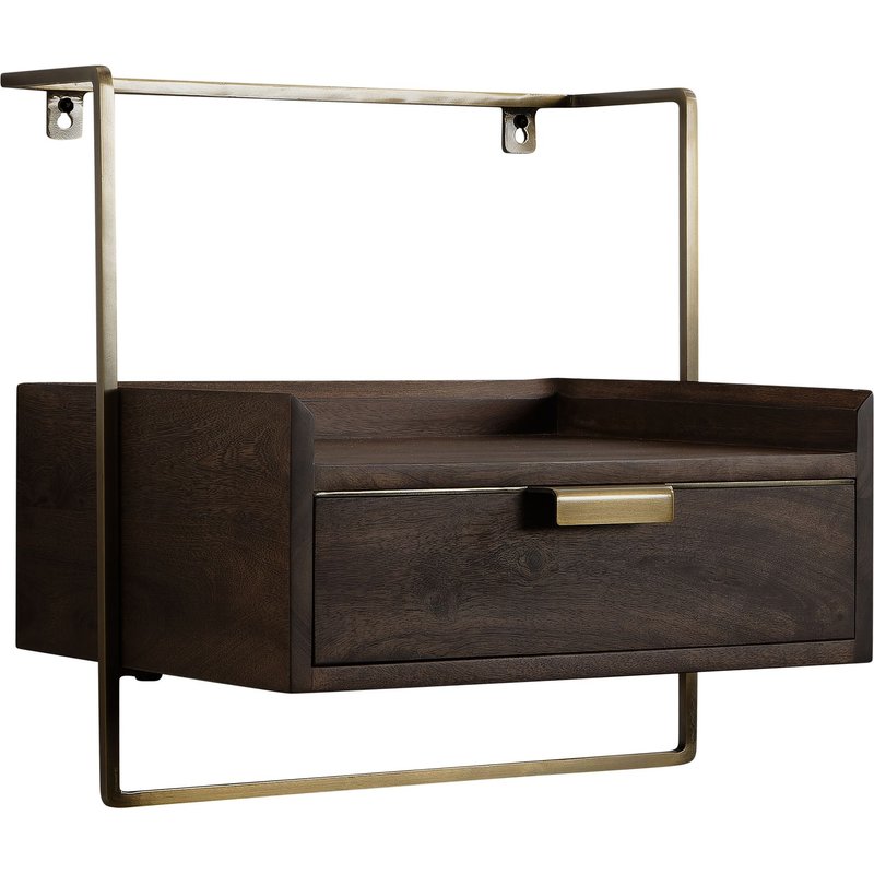 FineBuy Nachtkonsole zur Wandmontage aus Mango Massivholz mit Schublade – schwebender Nachttisch, modernes Wandboard mit Stauraum fürs Schlafzimmer – Nachtkästchen 44x45x35 cm