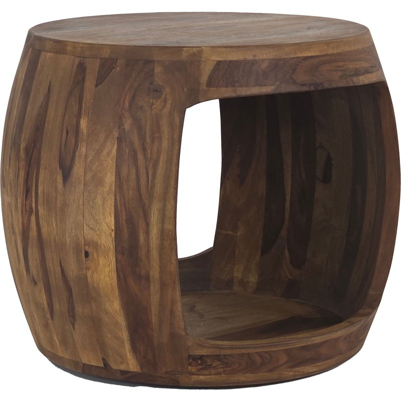 Design • Runder Beistelltisch mit offenem Ablagefach • Modernes, harmonisches Design mit klarer Linienführung • Massives Sheeshamholz mit ausdrucksstarker Maserung • Warme Farbtöne schaffen eine gemütliche Atmosphäre • Kompakte Größe – ideal als Sofatisch oder Dekoelement