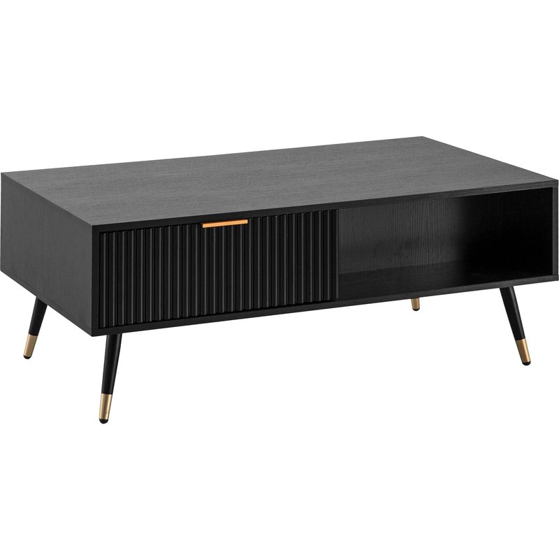 Design • Rechteckiger Couchtisch in modernem Design • Schubladenfronten in eleganter Lamellenoptik • Große Ablagefläche für Snacks, Fernbedienungen und Zeitschriften