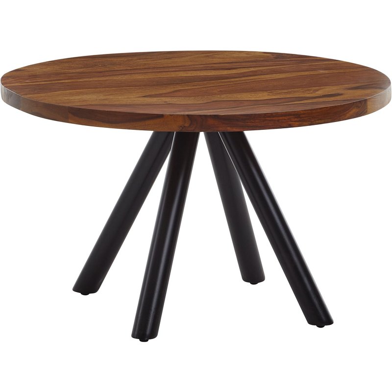FineBuy Couchtisch Sheesham Massivholz rund Ø60 cm · Wohnzimmertisch mit stabilen Metallbeinen · Massivholztisch im modernen Industrial Design mit einzigartiger Holzmaserung