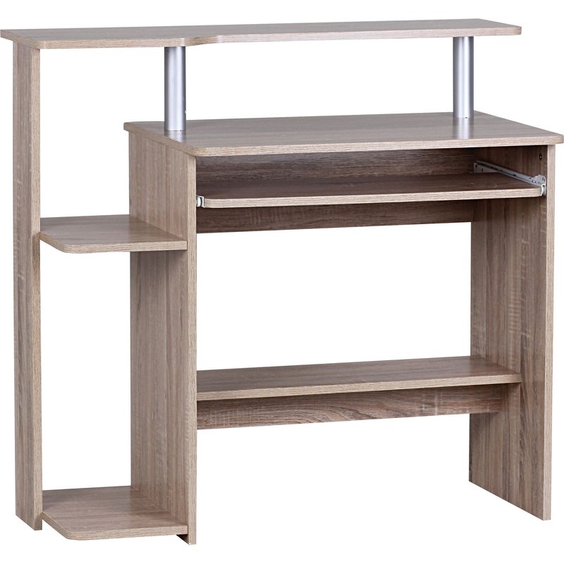 Besonderheiten • Der Tisch bietet viel Platz dank diverser Ablagemöglichkeiten • Großzügige Arbeitsplatte für unbeschwertes Arbeiten • Intelligenter und platzsparender Tastaturauszug durch zwei Metallschienen • Der Monitor lässt sich prima auf der obersten Platte abstellen • Ein PC ist im untersten Fach perfekt verstaut