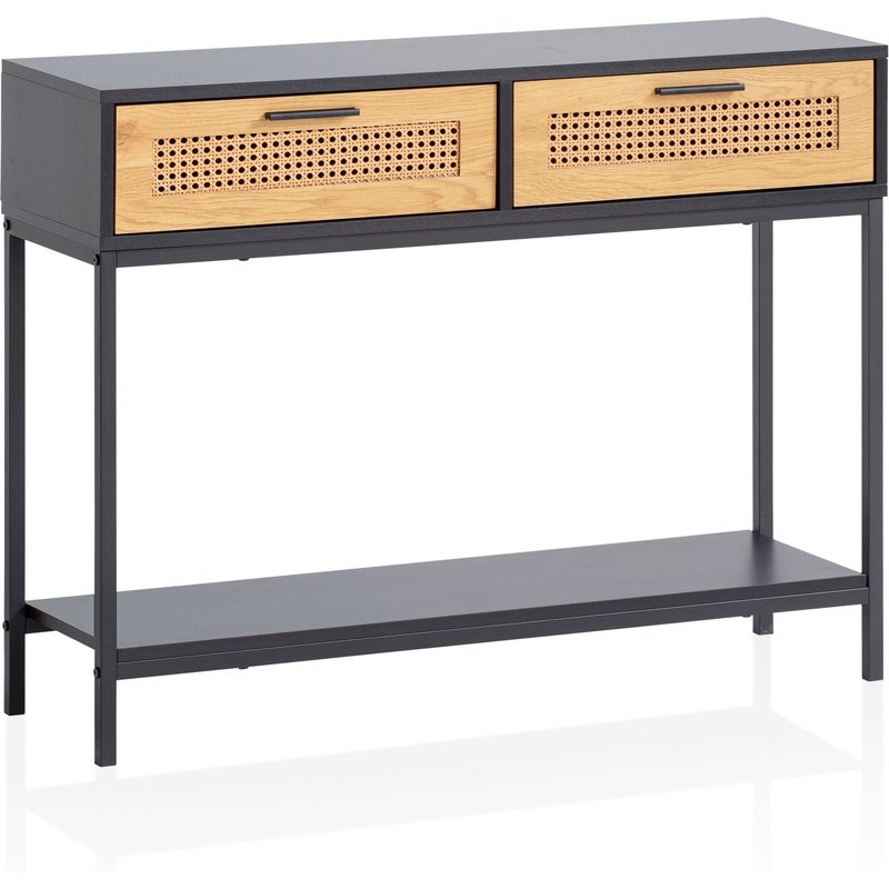 FineBuy Konsolentisch Schwarz 100x30x75 cm Design Anrichte Flur, Ablagetisch Schmal mit Wiener Geflecht, Flurtisch mit Schubladen und Ablage, Dielentisch Lang Hoch Rattan